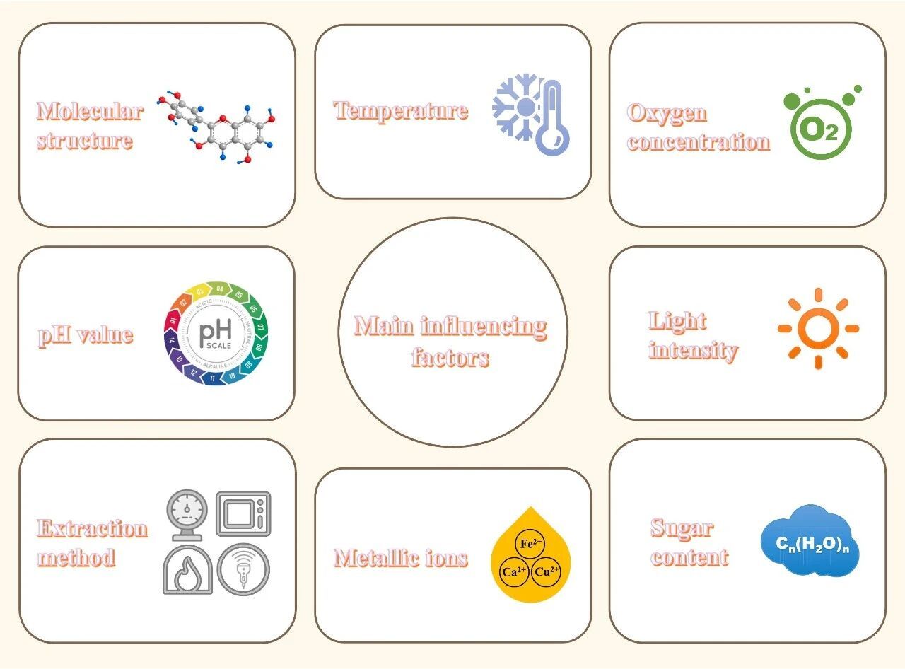 Fig. 5. Factors affecting the stability of anthocyanins.