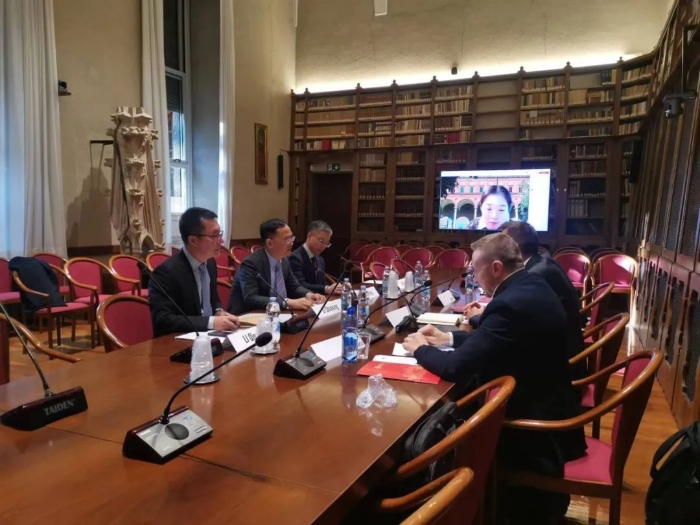 双方回顾了两校在联合办学、学生互换、教师互访等方面的交流合作历程,期待双方同向发力,深化已有合作,积极探索合作新领域,共同为两校师生搭建交往交流大平台,为中意两国高等教育合作共赢发展贡献力量。