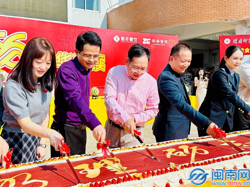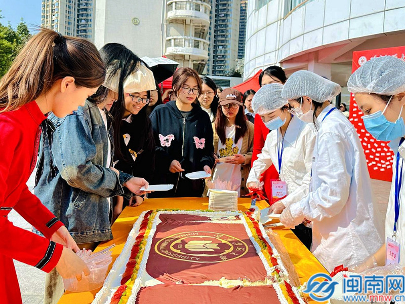 活动伊始,闽南师范大学党委常委、副校长何绍福在“节约粮食 反食品浪费 我在行动”签字墙上签名,为美食节拉开序幕。随后,何绍福与嘉宾共同切开长达6.6米的66周年校庆大蛋糕。