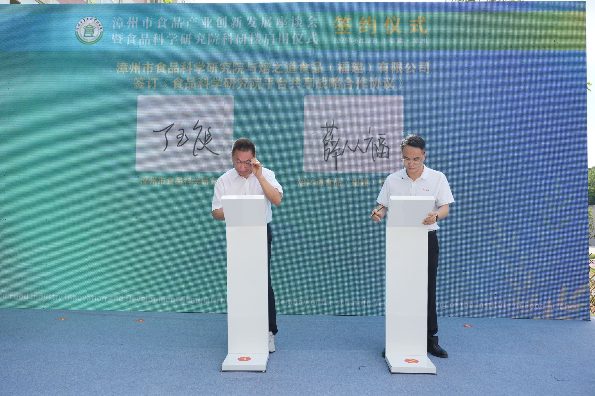 活动现场,食科院与焙之道食品(福建)有限公司、福建其亮食品科技有限公司签订了《平台共享战略合作协议》,并与漳州卫生职业学院、云霄县人民政府、福建漳龙集团有限公司、福建聚芝林大健康产业集团、全家福(福建)投资集团、稀瑞材料技术(杭州)有限公司等达成多项战略合作,标志着漳州市食品产业在产学研深度融合上迈出坚实步伐。