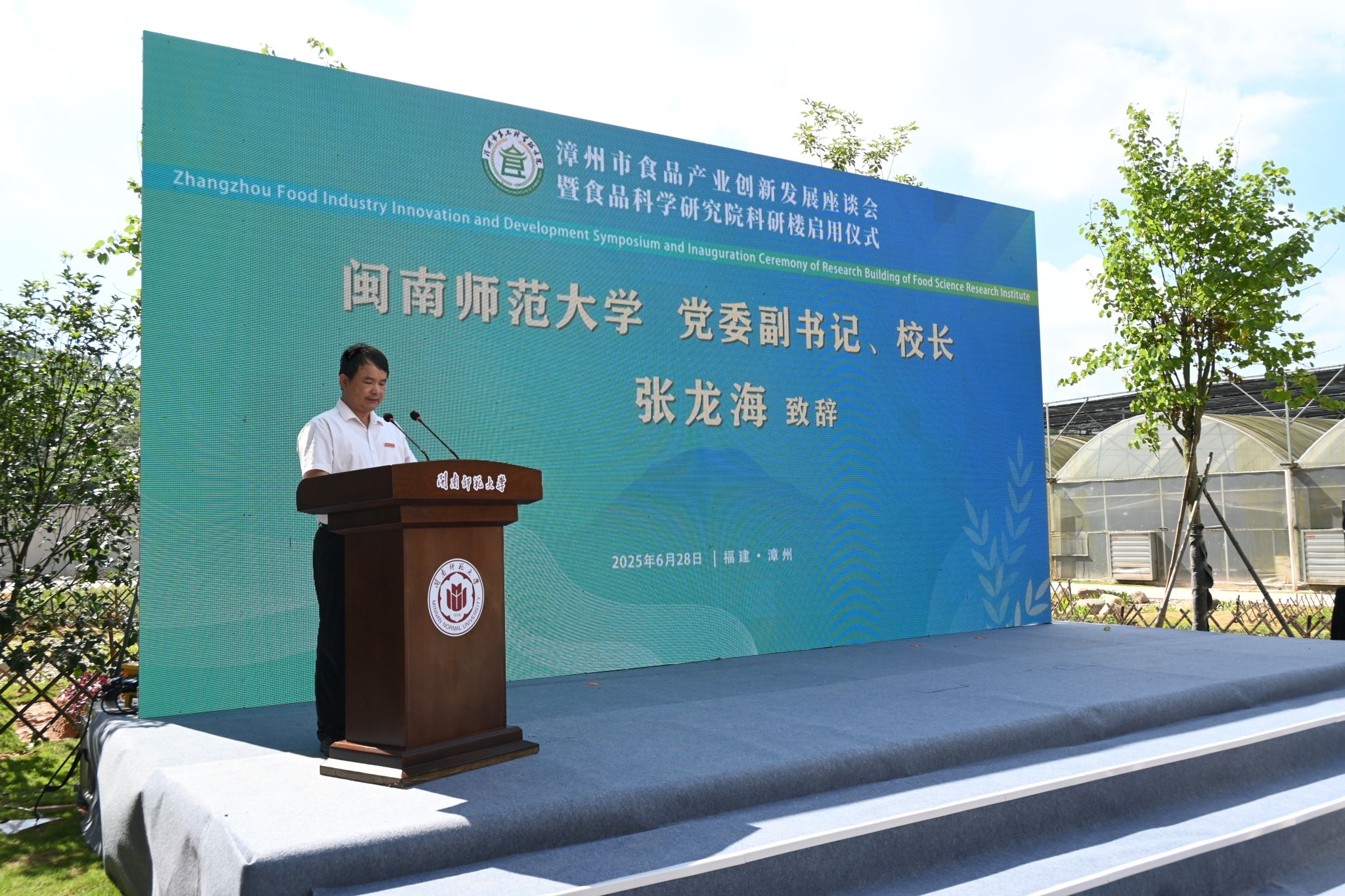 闽南师范大学校长张龙海在致辞中表示,漳州市委、市政府与闽南师范大学携手共建食科院,是一次顺应时势的战略携手,更是一次双向奔赴的共赢合作。希望食科院高效利用科研楼完善的科研环境,持续开展科研技术攻关,推进资源聚合,提升成果转化成效,努力将食科院打造成为校地企合作的标杆和样板,为漳州市食品产业创新发展提供强劲动力。