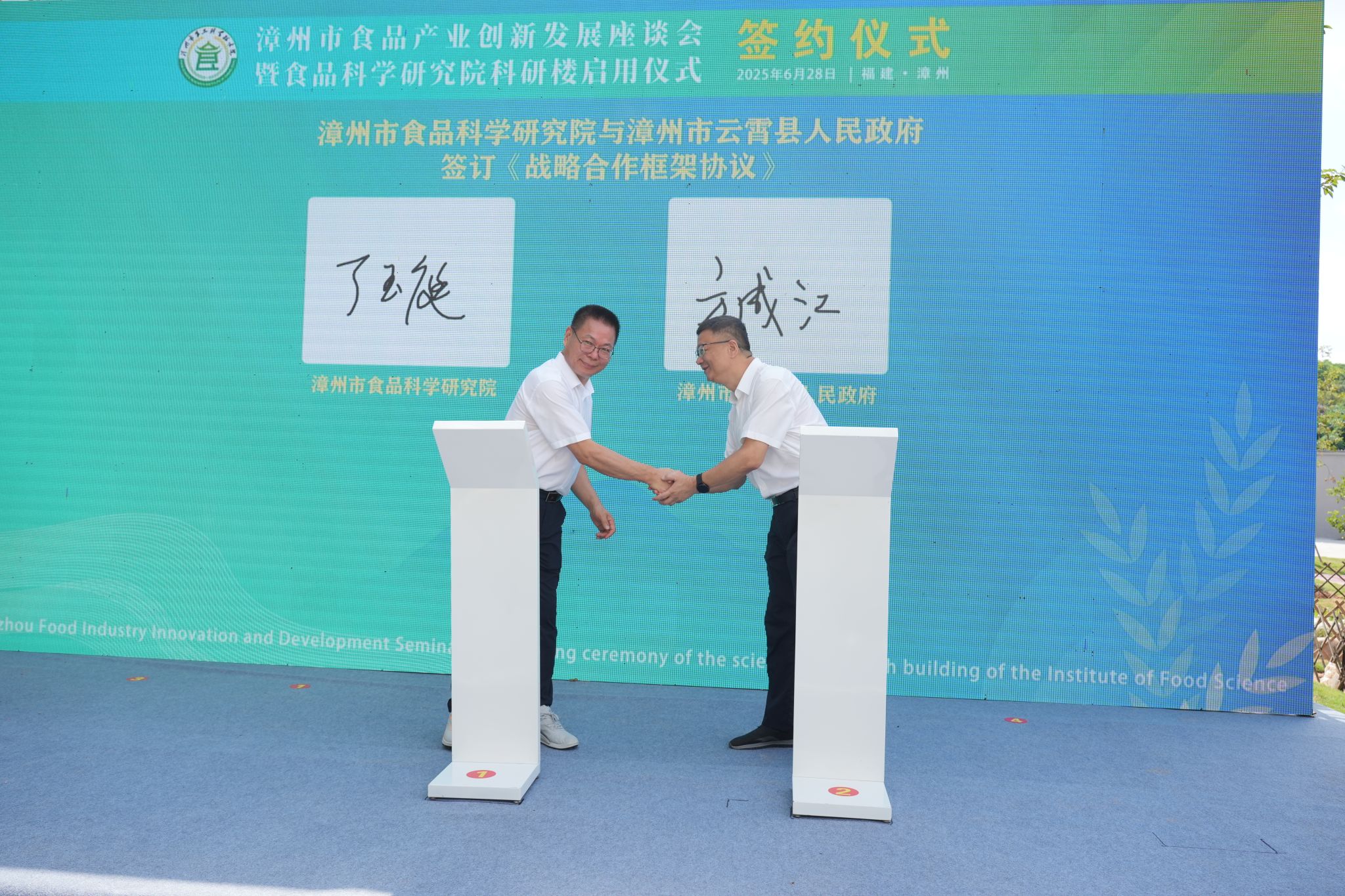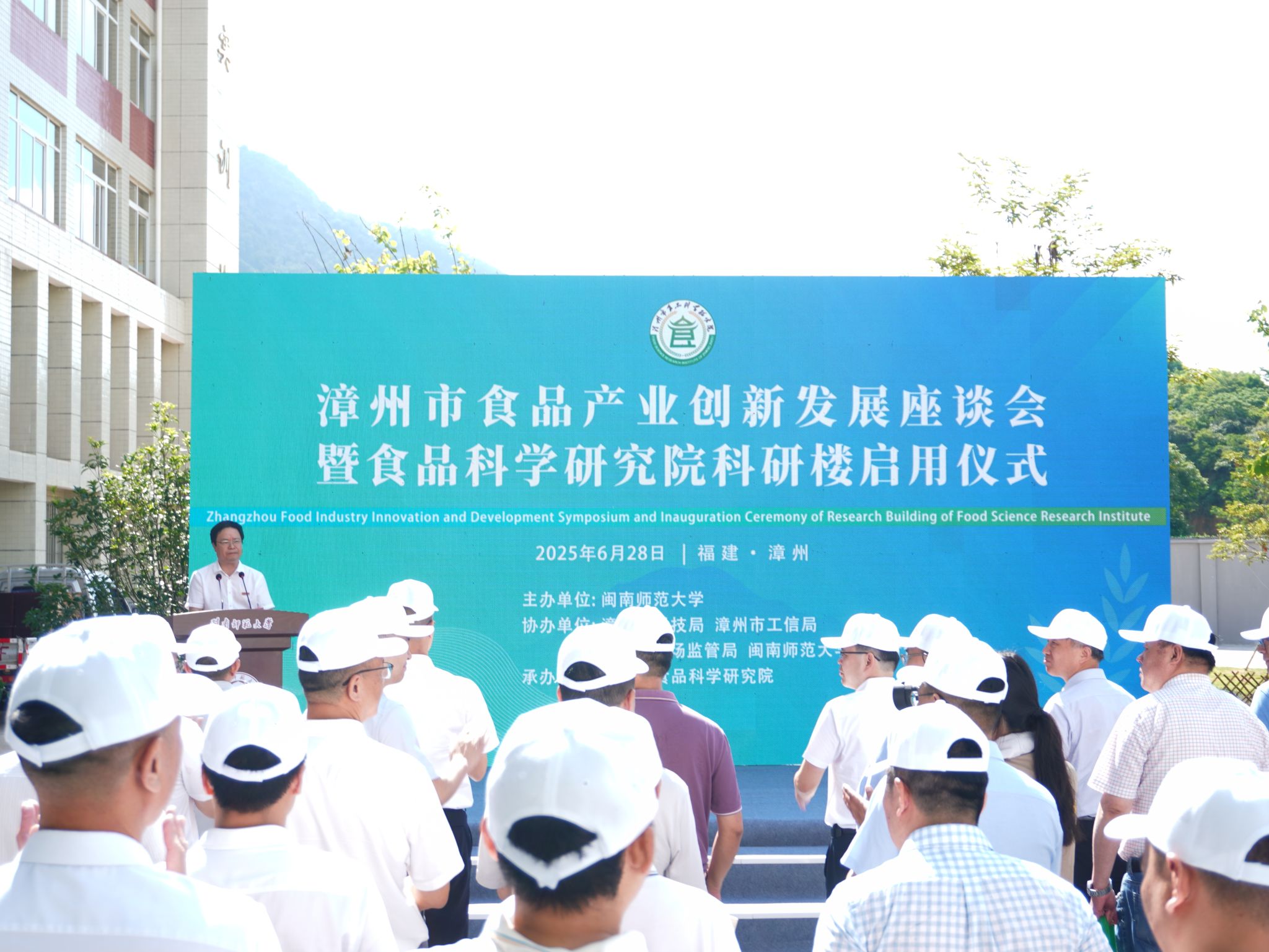 2025年6月28日,漳州市食品科学研究院(以下简称“食科院”)科研楼启用仪式暨食品产业创新发展座谈会在闽南师范大学隆重举行。本次活动由闽南师范大学主办,漳州市科技局、工信局、市场监管局及闽南师范大学社会合作处协办,漳州市食品科学研究院承办。漳州市人民政府副市长林少金、闽南师范大学校长张龙海、中国工程院院士金征宇等领导专家,以及来自全国各地的食品行业企业家代表齐聚一堂,共同见证这一重要时刻。